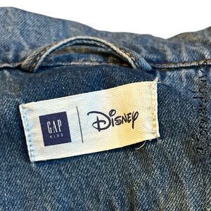 This Gap Kids Disney trucker jacket in size XS (4–5T) combines classic denim styling with playful character detail. Made from 100% cotton, the jacket features a traditional button-front design, long sleeves with buttoned cuffs, and a pointed collar. The standout feature is the colorful embroidered Mickey Mouse graphic on the back, adding a fun and stylish touch for young Disney fans.