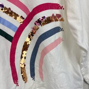 Gap Kids Double Rainbow Sequin Tee Shirt Long Sleeve. Girls size medium (8 years). Super soft long sleeve white top with colorful double rainbow design. Worn and washed once, though does have a super faint mark on the sleeve (see last photo; untreated).