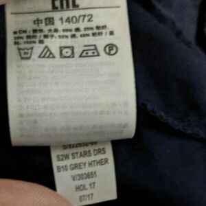 • Heather gray sweater knit top with multi-colored stars, navy full lined woven skirt