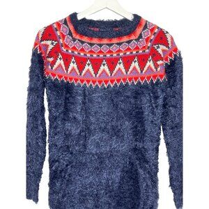 Gap Kids Fuzzy Fair Isle Sweater Dress Blue Red Knit Long Sleeve Winter Cozy