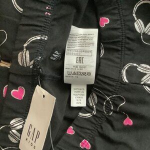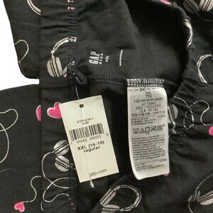 Gap Kids Girls Black Leggings Headphones Hearts Print XXL 14-16 Cotton Blend NWT