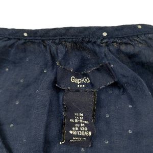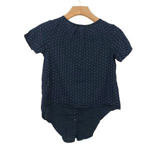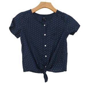 Gap Kids Girls Blouse Medium Navy Polka Dots Short Sleeve Tie Front Button Up