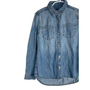 Gap Kids Girls Denim Chambray Button Down Shirt Blue Small S Long Sleeve