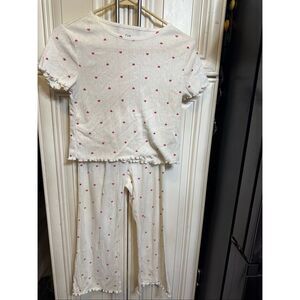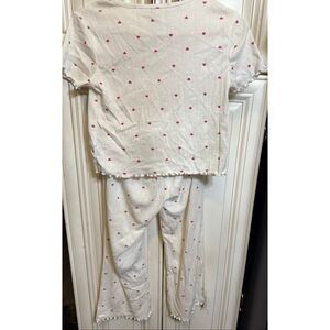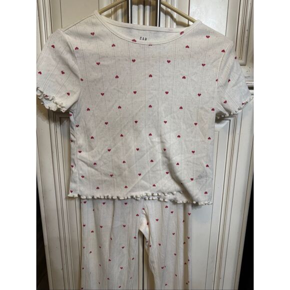 Gap Kids Girls Recycled Pointelle Knit Heart Print Pajama Set Ivory Frost Size 10 NWOT