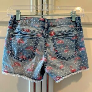 Gap Kids Girls Stretch Denim Shortie Shorts. Flamingo & Star print. Size 10. EUC