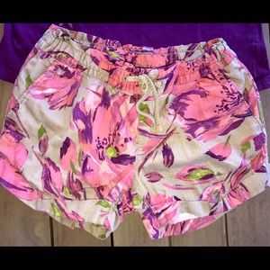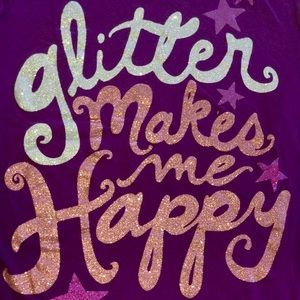 Gap Kids Girls outfit. Tee is short/cap sleeves, purple with the words "Glitter Makes Me Happy" printed on the front in glittery silver, purple, pink colors. Size L(10) but has a slim fit to it. It goes with the Gap Kids size 6 regular fit shorts, elastic waist w/ tie, pockets, in a khaki Cole with pink & purple flowers printed on it. My daughter wore them at the same time and it worked perfectly- I think she was 7 or 8 but is small for her age. Excellent condition!❤️ this outfit!