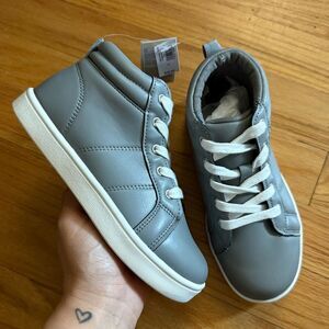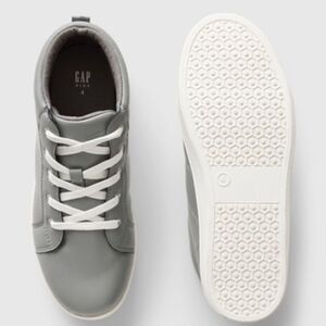 These sneakers are made with a vegan leather upper. Rubber gripper sole. Lace-up styling