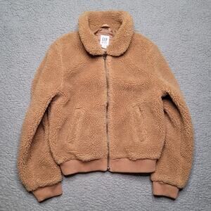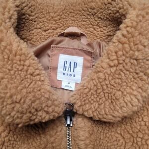 Gap Kids Jacket Medium Tan Brown Sherpa Bomber Zip Collared Fuzzy Soft Cozy