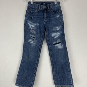 Gap Kids Jeans Boys 7 Straight Distressed Destroyed Medium Wash Blue Denim