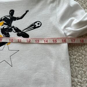 Gap Kids Long Sleeve Soccer Print Tee XL. Preowned and in good condition. Long sleeve white tee with soccer print on front that says Go For The Goal. Approx measurements are in pictures. Please see all photos.