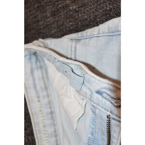 Style: Midi Denim Shorts, Bleached/Light Wash, Factory holes/Destruction, Raw Hem Adjustable Waist