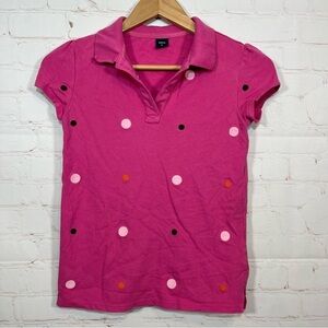 Gap Kids Polka Dot Polo Shirt Girls XL 12 Pink Embroidered