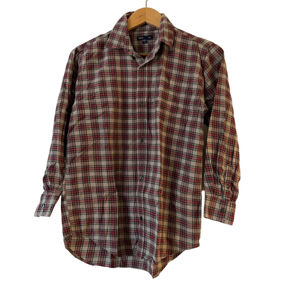 Gap Kids Size XXL Boys Flannel Button Up Shirt Red Gray Plaid Long Sleeve