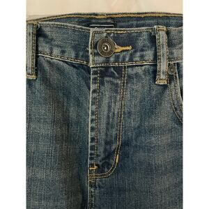 Boys skinny fit jeans, size 16R, in excellent pre-owned condition. Free of stains, rips, snags, or tears. This pair of jeans features a zip fly and adjustable waist. In a medium wash with mild distressing. From a smoke-free home.
