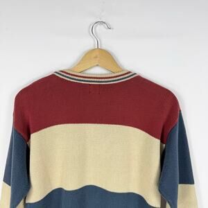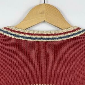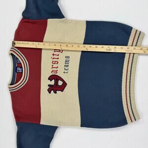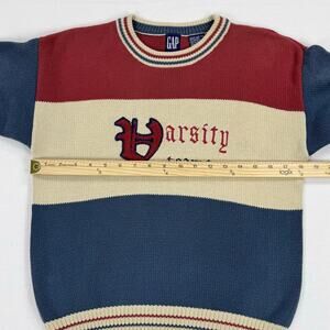 Gap Kids Vintage 80s Varsity Teams Knit Sweater Large Red Beige Blue 100% Cotton