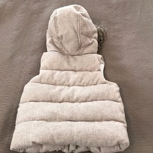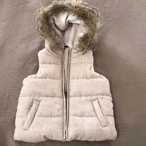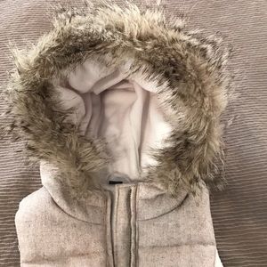 Size 5T Adorable Tan with Fur hood warm puffer vest! Only worn a few times. Basically brand new