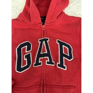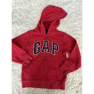 Great, classic Gap Kids sz. XS red zip logo hoodie. Soft, excellent quality and model that will never go out of style. Item does show signs of normal wear, wash and use from two boys which includes ( see pic) a very small mark near the left pocket. This s very minor and would not be noticed unless specifically looking for it.No rips, tears etc. Cute-perfect hoodie!