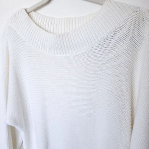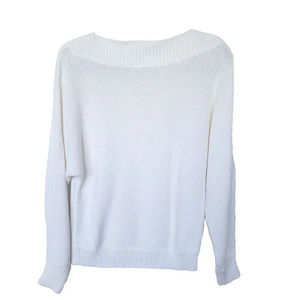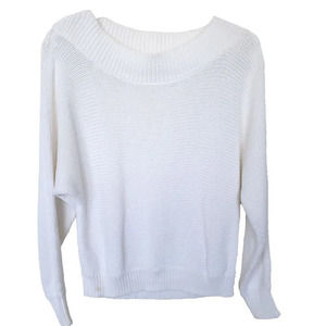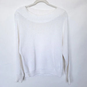 Gap Knit Sweater White Size Medium Long Sleeve Boat Neck Ribbed Pullover Cotton