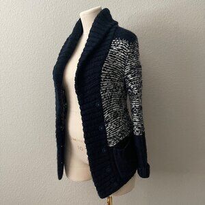 Gap Knitted Fairisle Long Cardigan in White and Indigo/Navy, Size Small