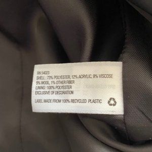Ex Indonesia, shell 73% polyester, 12% acrylic, 9% viscose, 5% wool, 1% other, lining 100% polyester.