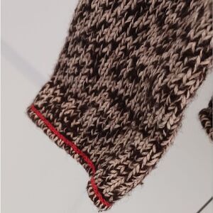 Warm and cozy in great condition.  Rolled hem with red stitches at cuffs.