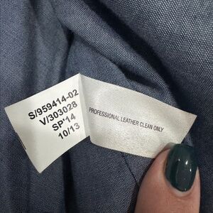 Silver Zipper detailing on arms, chest, and pockets along with buckles on back. Snap collar.