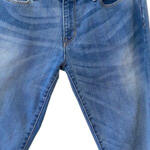 Gap Legging Skinny Jean in Riot Wash. Five-pocket design with zip-fly and button closure. Fading and whiskering throughout. Minuscule dimpling on the crotch area with some signs of wear as seen in the pictures. Still in great pre-owned condition.
