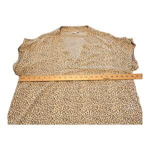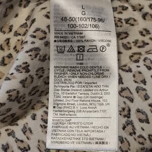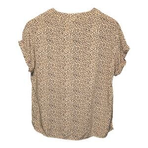 Gap women’s short sleeve blouse, size large. Beige with allover leopard print pattern. Lightweight woven fabric, 100% rayon. Features v-neckline, short sleeves with rolled cuffs, and relaxed flowy fit.