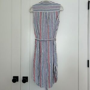 Gap Linen Blend Sleeveless Striped Midi Shirt Dress Blue Pink, in good condition. Includes matching, removable belt.