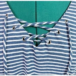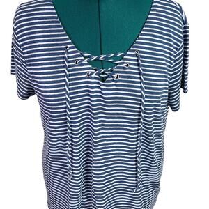 Gap Linen Blend Tee Shirt Lace Up Front Plus XXL Coastal Navy Blue White Stripes