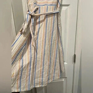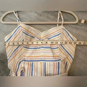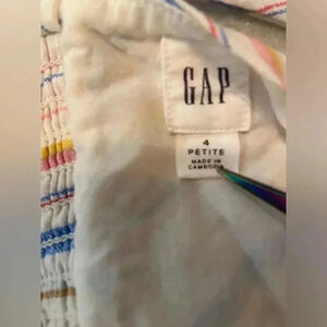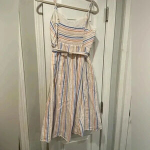 Gap Linen Cotton Striped Ruched Front Smock Back Belted Dress Size 4P