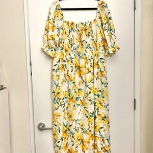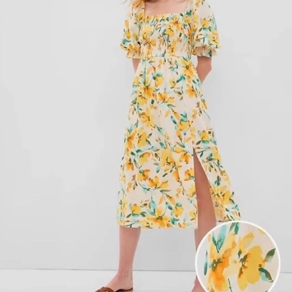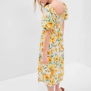 Gap Linen-Blend Puff Sleeve Midi Dress in Yellow Floral