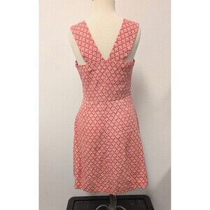 Gap Linen/Cotton Pink Diamond Weave Fit & Flare Square Neck Dress sz 4 Preppy