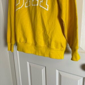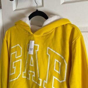 Vibrant yellow hoodie with GAP logo. Comfortable and stylish.