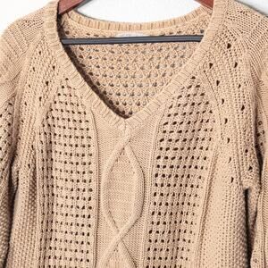 Gap London Women’s Beige Cable Knit V-Neck Sweater Classic Y2K Coastal Size L