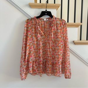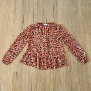 Gap Long Sleeve Peplum Pink Floral Print Blouse, Size XS