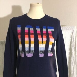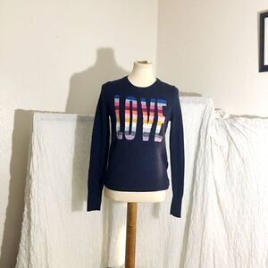 Navy blue long sleeve, pullover,, crew neck, sweater top. Rainbow "Love" word on the front. Pre-owned in good condition. Please refer to pictures for best description and condition verification