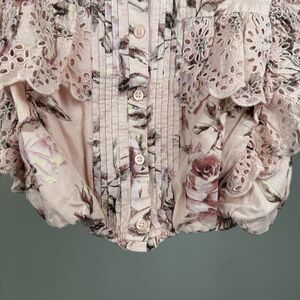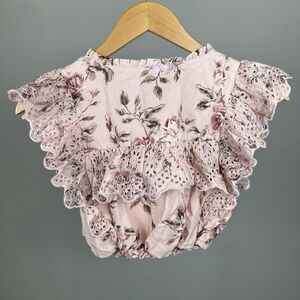 Gap × LoveShackFancy Girls Pink Floral Ruffle Button-Front Top Size Large