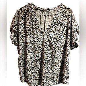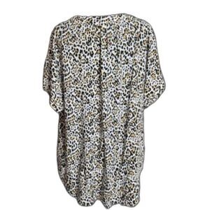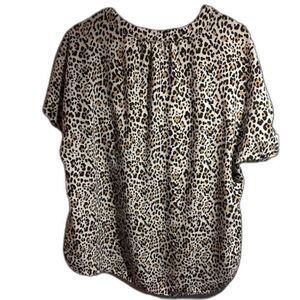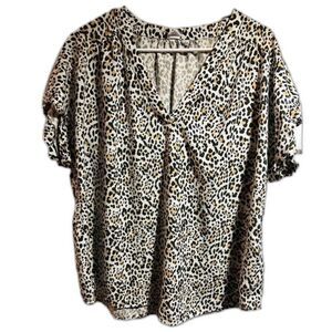 Gap Low Cut V-Neck Loose Fit Animal Print Women’s Short Sleeve Cuff Blouse Xl