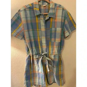 Gap Madras Multi Plaid Tie Waist Romper Size 12 Tall