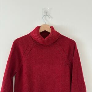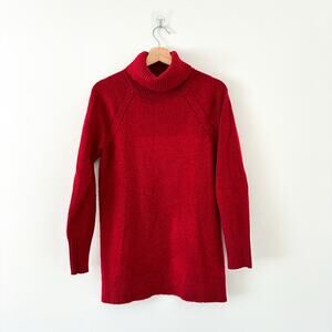 Details: Gap Maternity Brushed Cozy Turtleneck Sweater - Size: S- Color: Red- Material: 56% Cotton, 24% Acrylic, 20% Polyester- Features: Turtleneck, long sleeve, knit, pullover, stretch, ribbed knit collar cuffs and hem, machine wash, comfort, breathable, outdoor, casual.