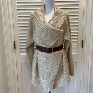 GAP long sleeve open front cardigan. Versatile tan color size XXL. Can be worn by anyone not just for maternity. Stylish cable knit design, drape front allows many ways to style. Hangs great with a belt. Perfect for Fall and Winter. A go to closet staple. Pair with leggings or jeans.