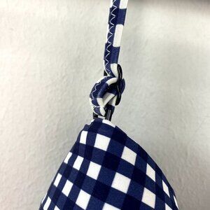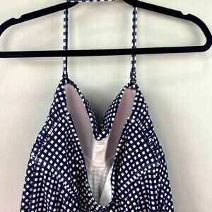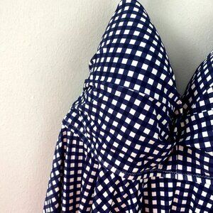 * Features: navy blue and white gingham / check print, tankini swim top, removable neck strap