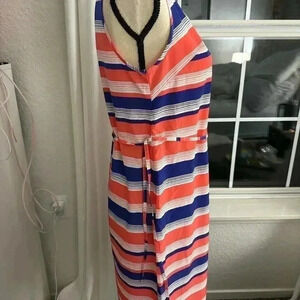 Tie Striped Dress, Size XS, Color: Peach, navy blue and white. Great condition. Tie detail can be worn with or without, strings on each side to loop through.