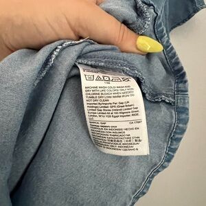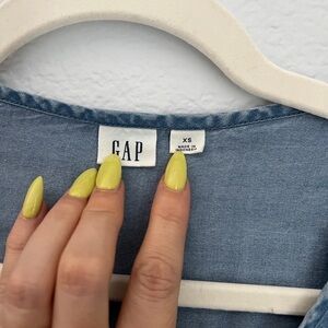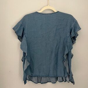 Gap Medium Wash Chambray Denim Jean Ruffle Sleeve Blouse Shirt Top