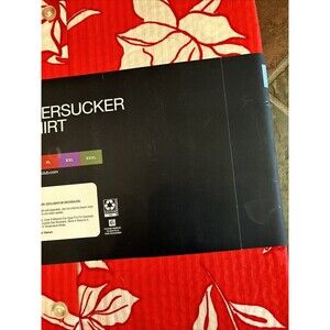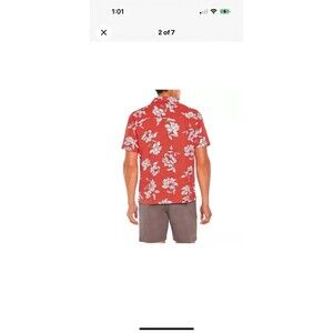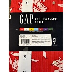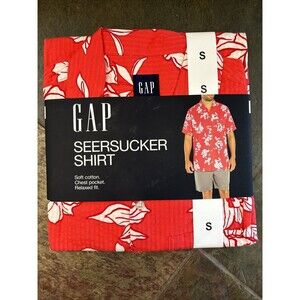 Men gap seersucker shirt button up collar cotton red floral print chest pocket soft cotton relaxed fit size small short sleeve new with tags cayenne flower fill machine wash