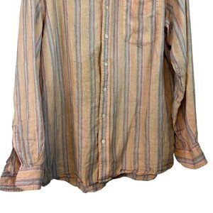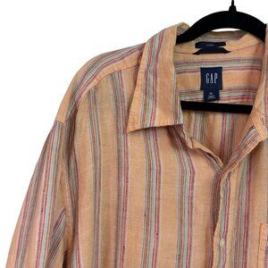 Gap Men's 100% Linen Striped Orange Vibrant Button Down Shirt Size XL