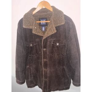 Gap Men's Corduroy Jacket L Chocolate Brown Sherpa Collar Y2K Button Up Pockets