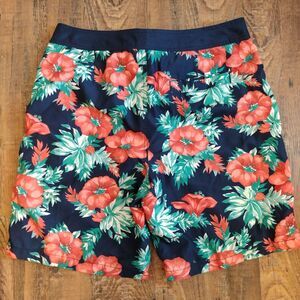 Gap Mens Floral Board Shorts L Navy Blue Hibiscus Aloha Swim Trunks Bathing Suit