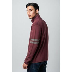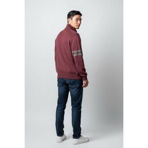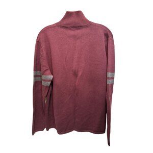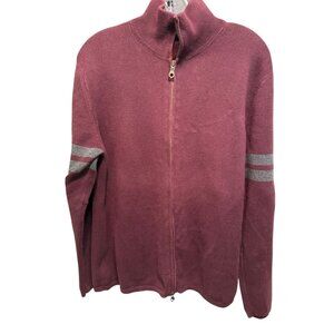 Gap Mens Full-Zip Burgundy Sweater With Gray Stripes On Sleeves